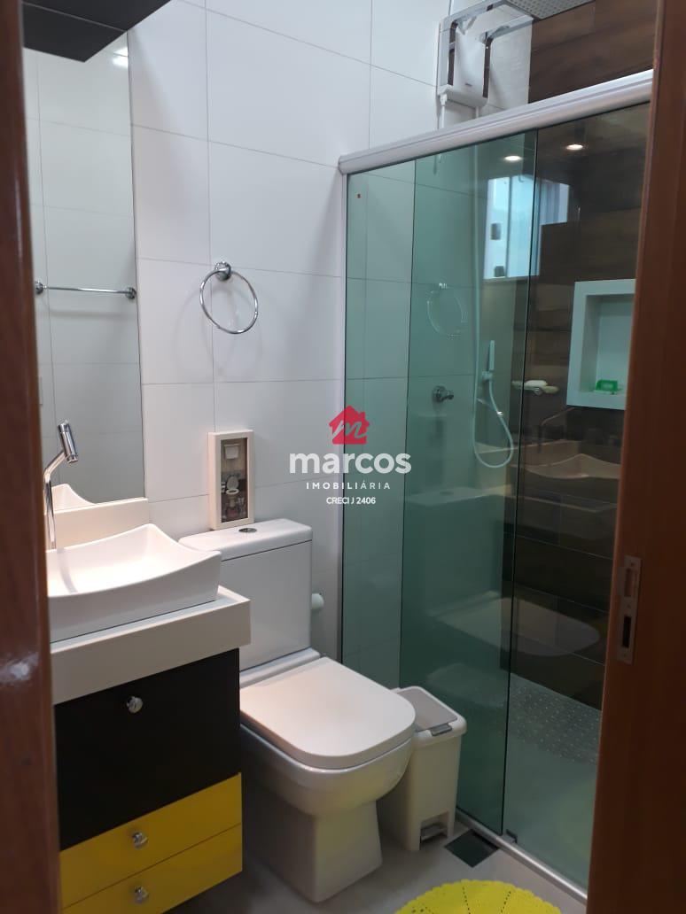 Banheiro da suíte com móveis planejados;