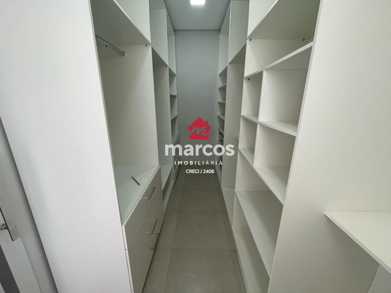 Uma suíte com sacada, closet e móveis planejados;
